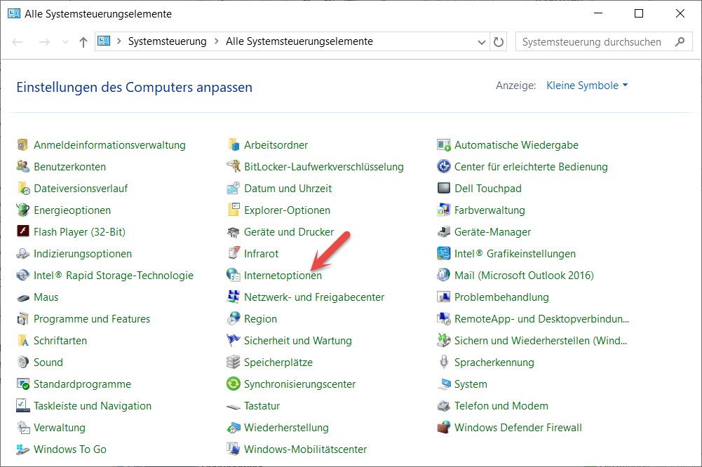 Open the ‘Control Panel’ and click on ‘Internet Options’.