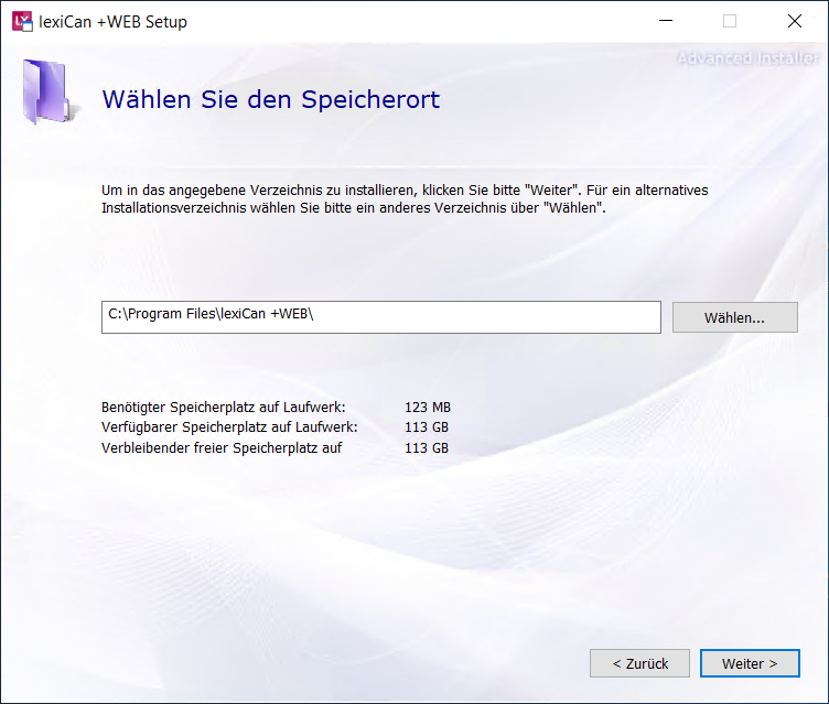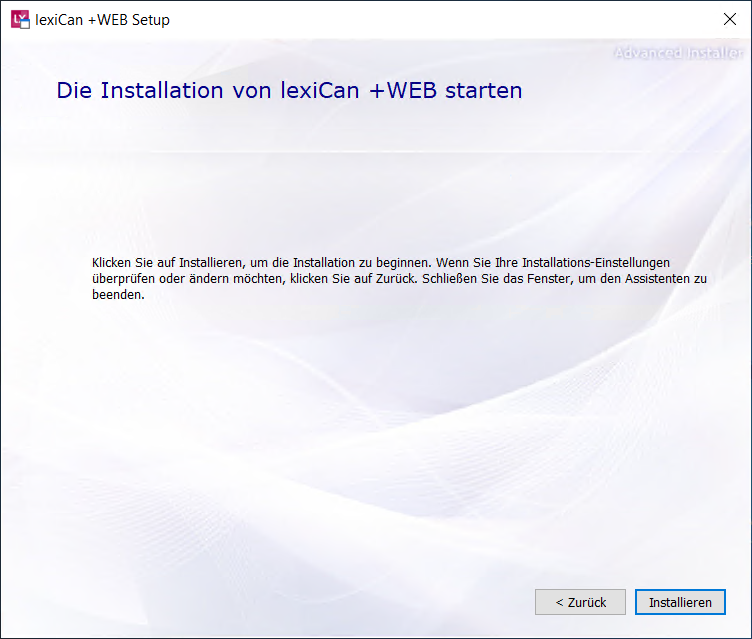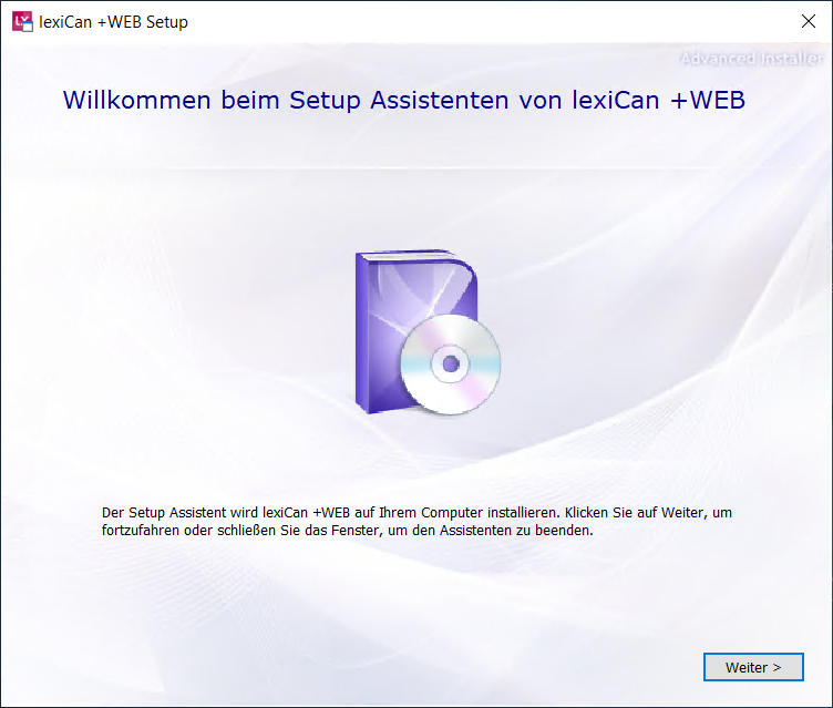 You install the components required for lexiCan +WEB in the usual way. Just click ‘Next’ at the first step.