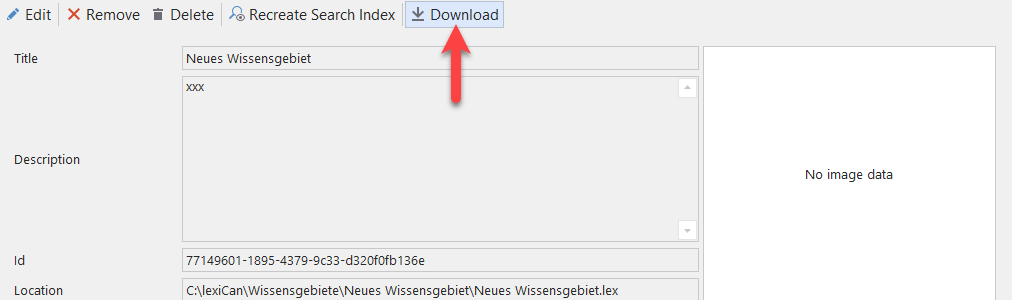 The administrator allows you to copy the complete data set of a project to any location. This function is especially intended for users of the lexiCan Cloud who do not have access to data directories of the server. So you can load/save your projects on your own data medium. Start the administrator, select the relevant project and click on ‘Download’, e.g.