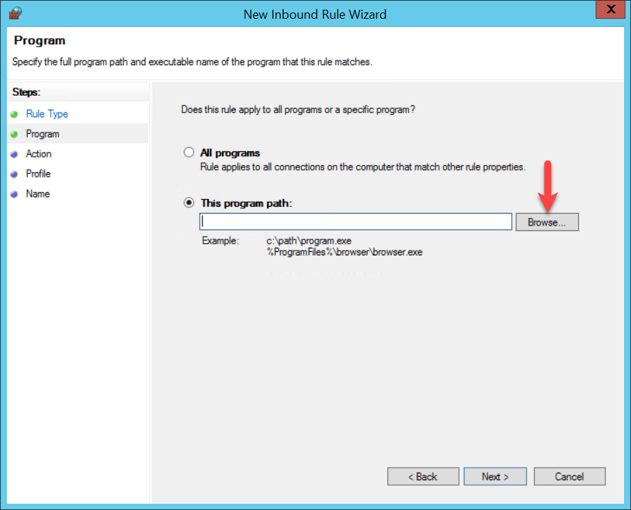 In the ‘Program’ area, click on ‘Browse...’.