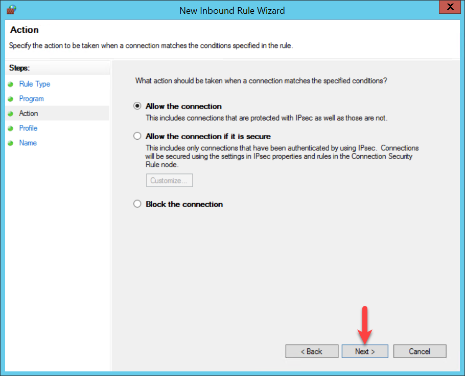 After all the new rule is listed within ‘Inbound Rules’ and the firewall setting is completed.