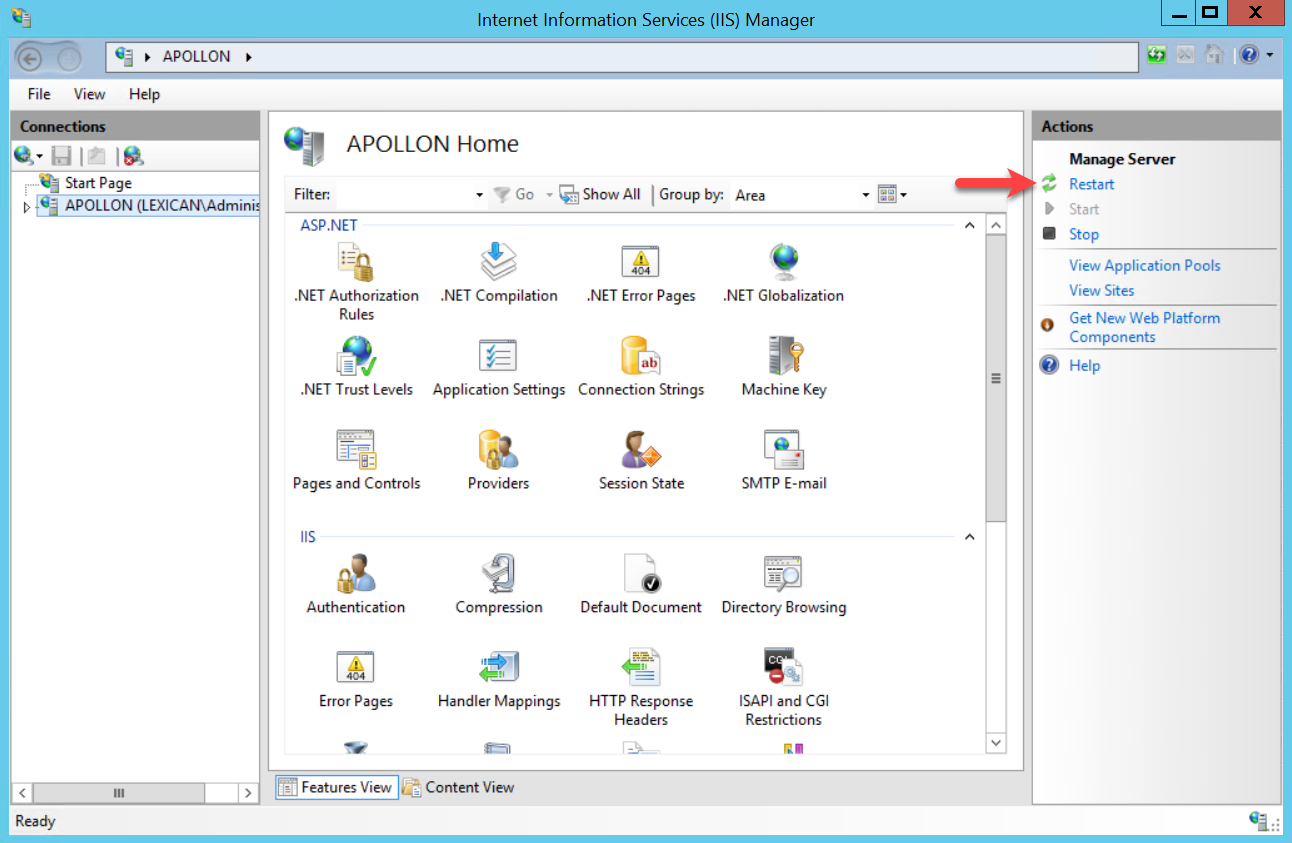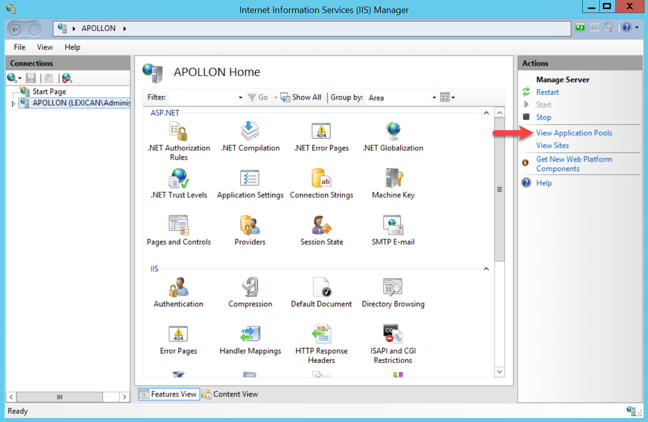 3. Start the IIS Manager and click "View Application Pools" on the right.