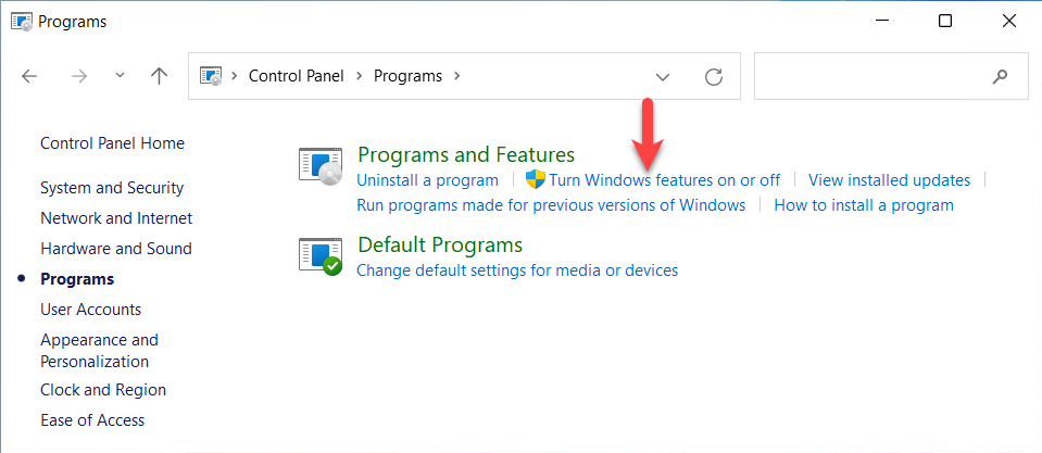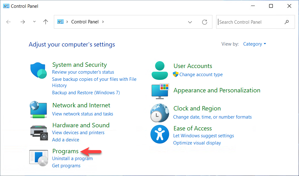 Open the ‘Control Panel’ and choose ‘Programs’.
