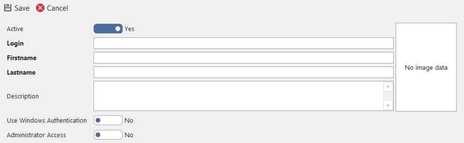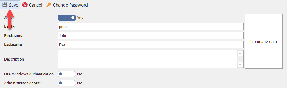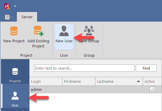 To create a user account, start the administrator and click on ‘New User’ in the top toolbar.